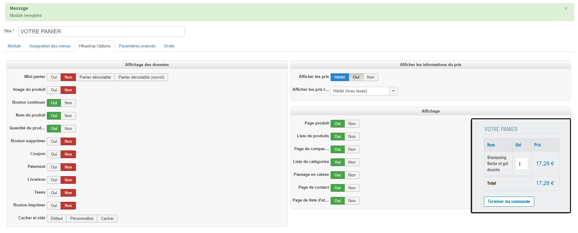 Par acquit de conscience, j'ai effectué la modification, mais maintenant, effectivement, au lieu de "Terminer", j'ai "continuer mes achats", mais le lien pointe vers le checkout et pas vers la boutique, et, au final, je ne trouve toujours qu'un seul bouton au lieu de 2 : "Continuer mes achats" et "Terminer"