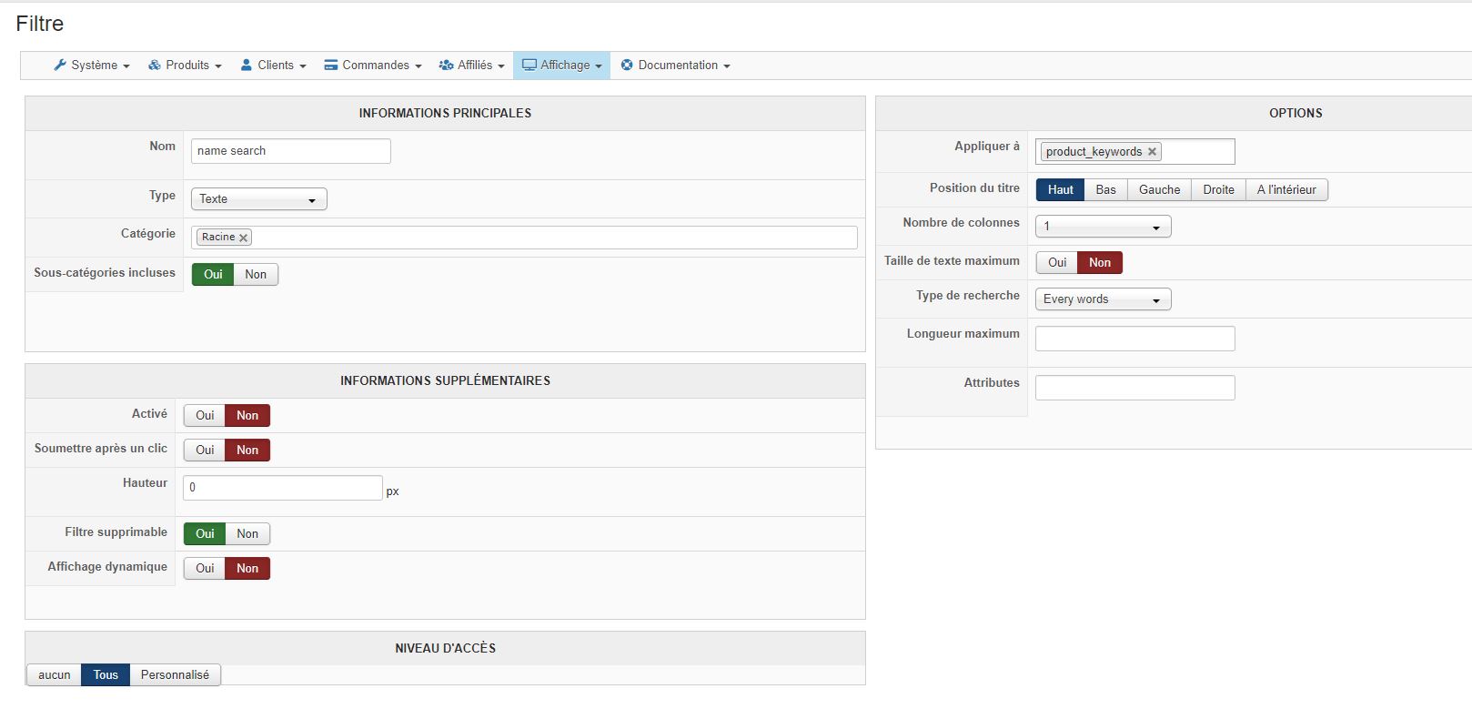 Situation 1: Afficher le nom du produit lorsque je cherche un mot englais en étant en anglais sur le site