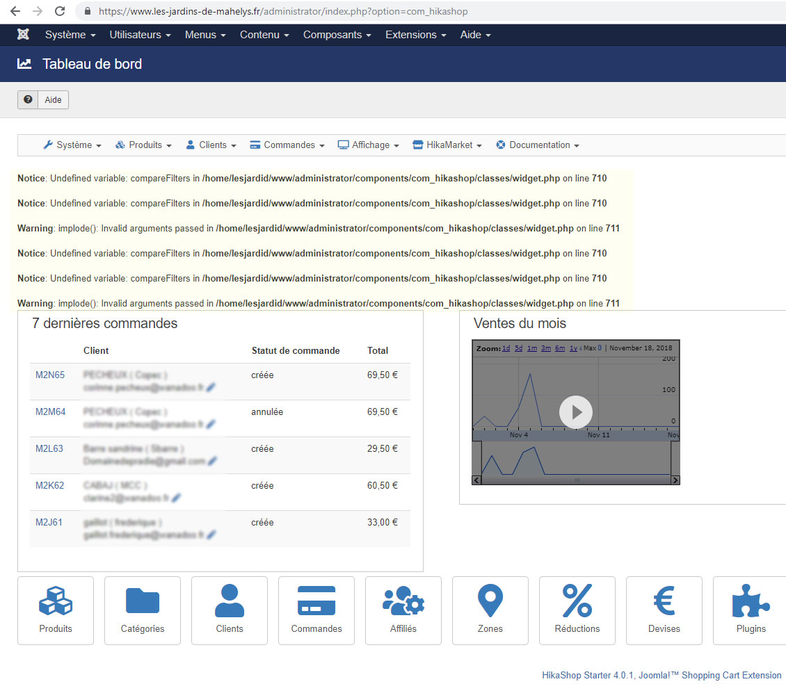 Warning: implode(): Invalid arguments passed in /administrator/components/com_hikashop/classes/widget.php on line 711