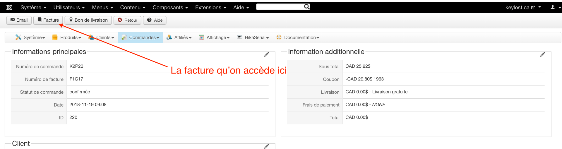 1. Est-il possible de faire afficher le numéro d'un coupon rabais utilisé avec une commande directement dans la facture? J'ai réussi dans le courriel, mais pas dans la facture qu'on accède par l'admin de Hikashop.