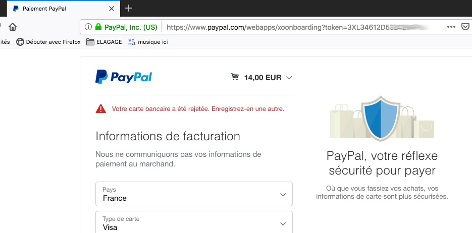 juste au moment de payer, une fois sur Paypal après avoir rempli les différentes infos de la carte.
