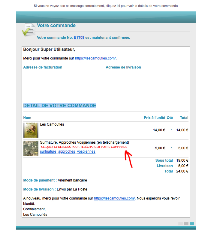 Est-il possible d'ajouter un texte juste en dessous du nom d'un produit à télécharger, dans le mail de confirmation de paiement, comme sur la pièce jointe?