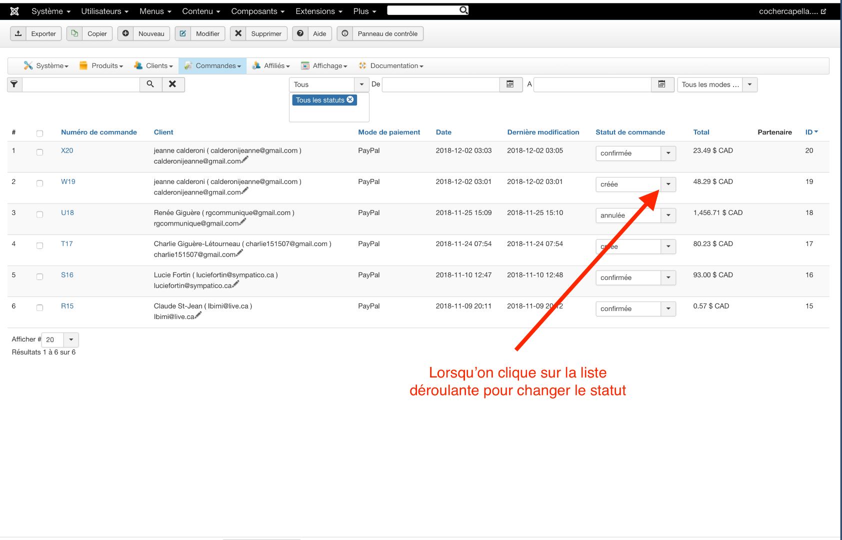 Sinon, sachez que vous pouvez également changer le statut de commande en ouvrant la commande et en cliquant sur l'icone d'édition de la section principale de la commande.
