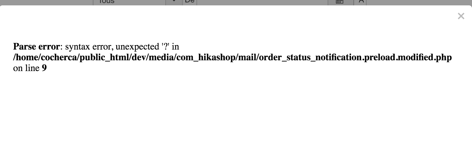 Merci pour votre réponseé Voici ce que j'obtient comme erreur dans la copie DEV du site: