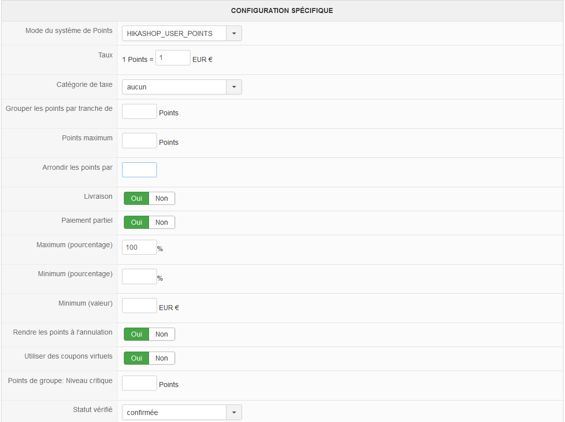 Nous utilisons les User Points Hikashop et cela fonctionne, les clients qui en possèdent peuvent payer avec.