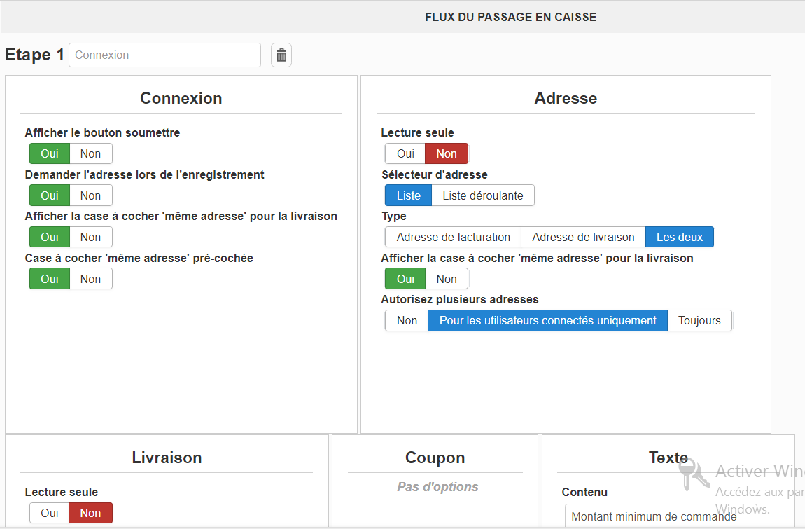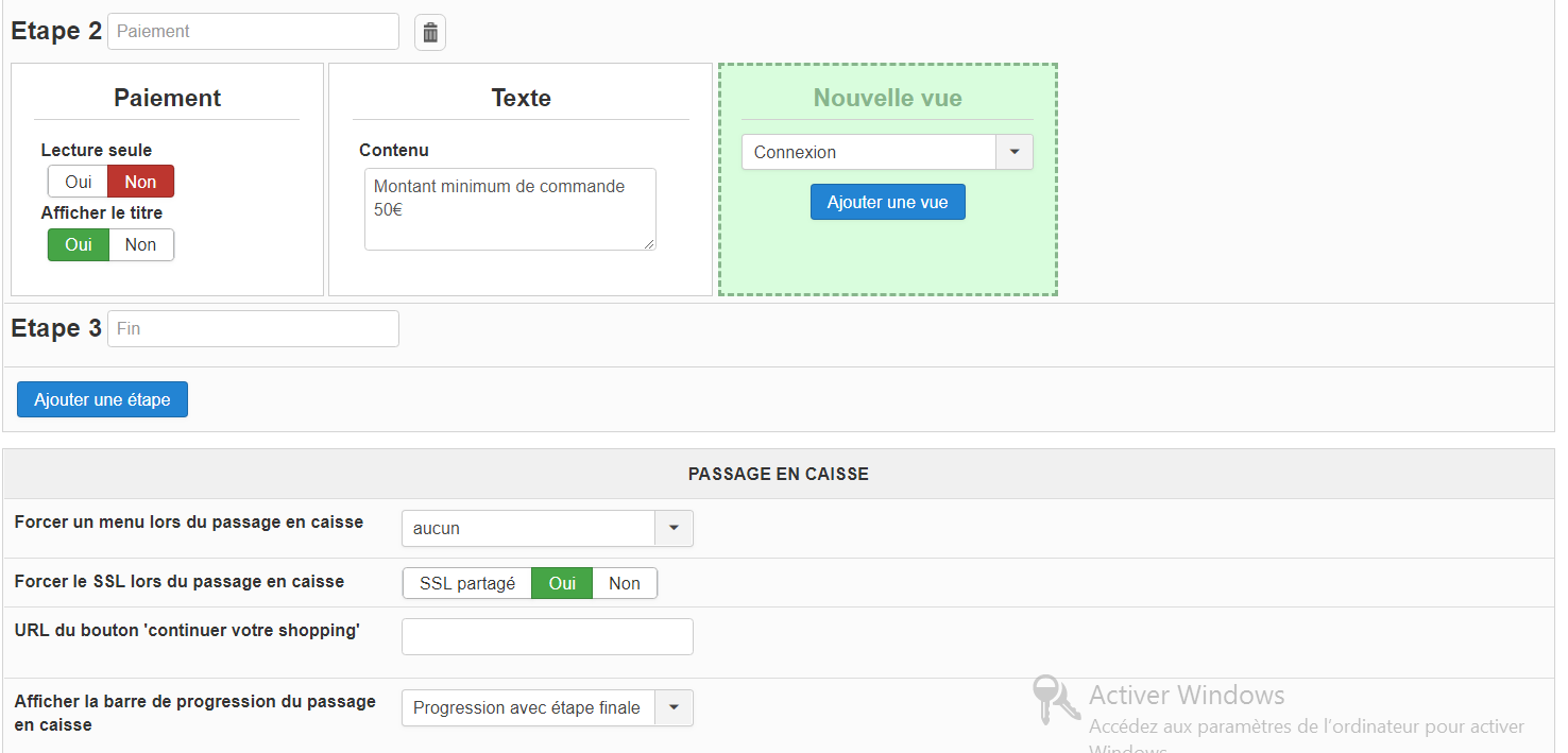Merci de fournir des captures de toutes les options dans l'onglet "passage en caisse" de votre configuration HikaShop pour que nous puissions voir comment vous avez configuré votre passage en caisse.