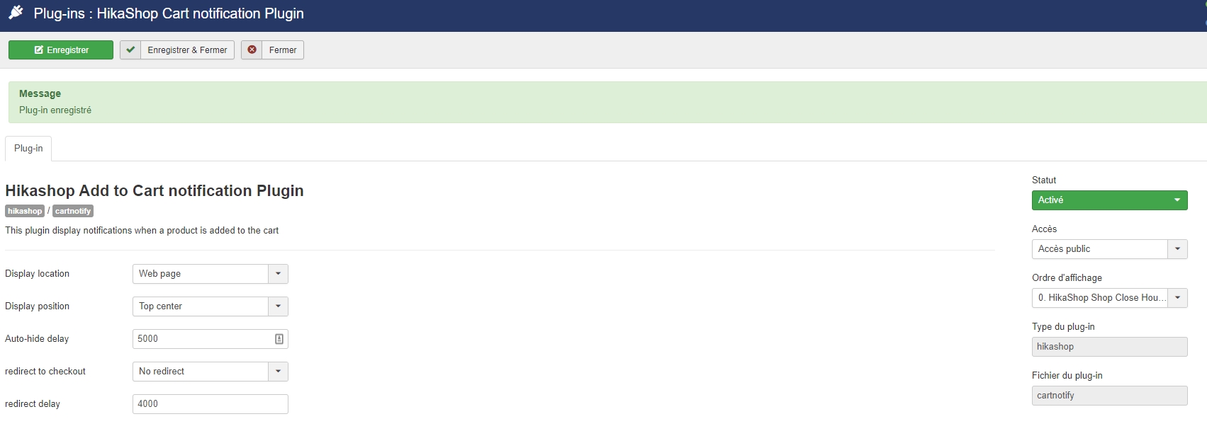 Concernant le fait que vous soyez redirigé sur le passage en caisse quand le plugin est désactivé, c'est tout à fait normal. Je ne vois pas le rapport ? Si vous voulez être tout le temps redirigé sur le passage en caisse, même quand le plugin est activé, il y a une option dans le plugin pour cela.