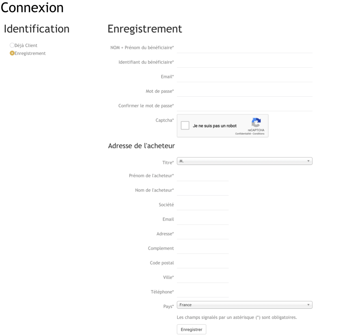 - Mettre une coche automatique, dans la catégorie « Adresse de l’acheteur » , qui permet de dupliquer automatiquement les infos si le bénéficiaire et l’acheteur sont les mêmes (= comme le font tous les sites marchands pour permettre une adresse de facturation différente – ou pas - de l’adresse de livraison)