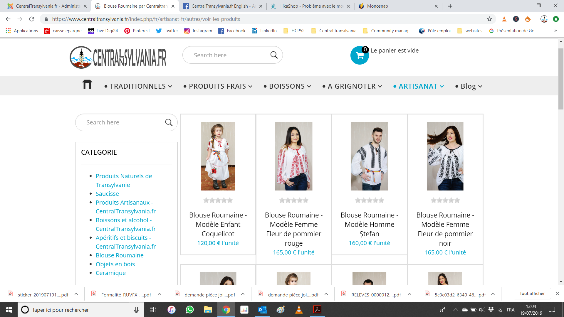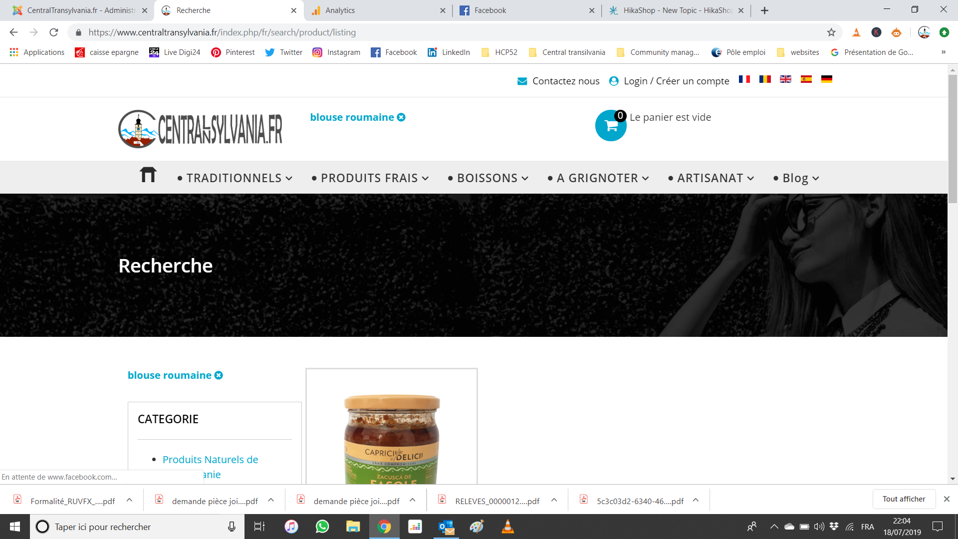 Vous trouverez en attachement l'impression d'écran avec les produits dont le nom est blouse roumaine.