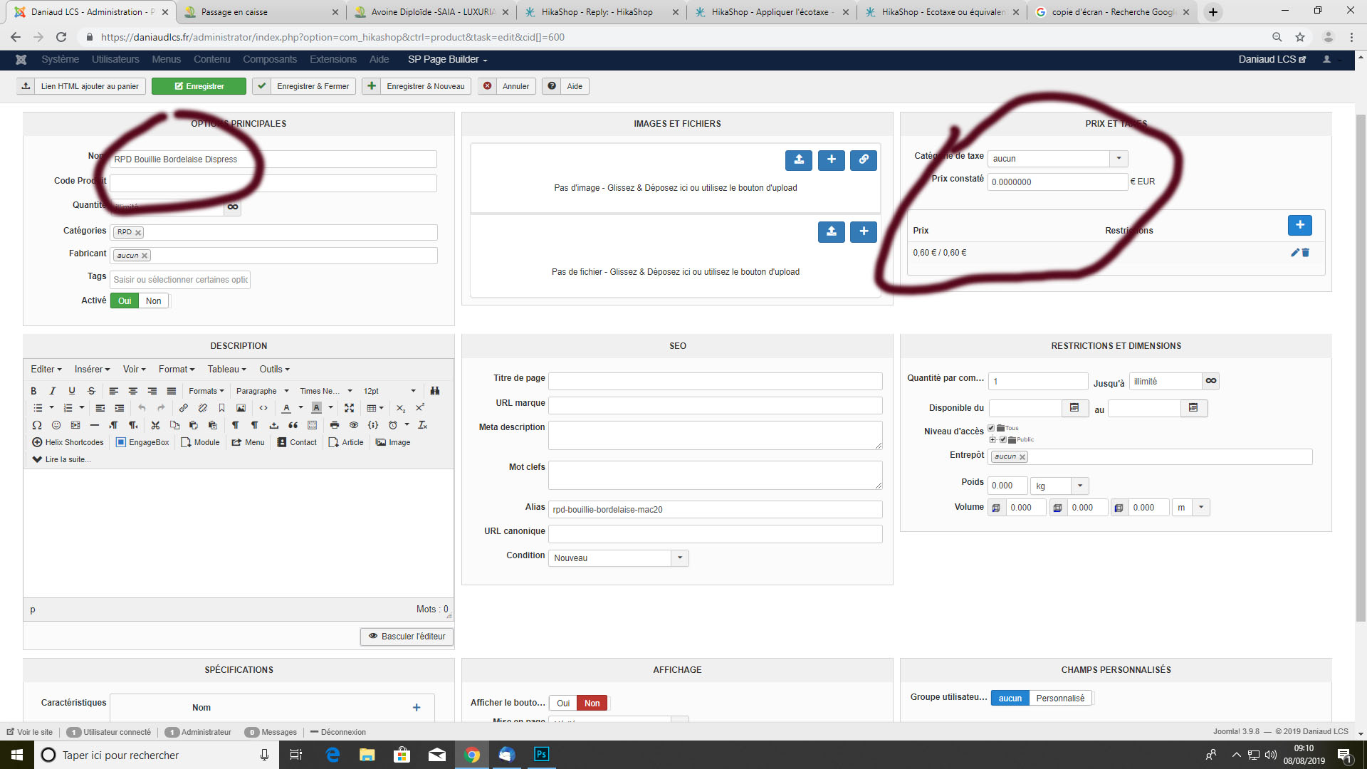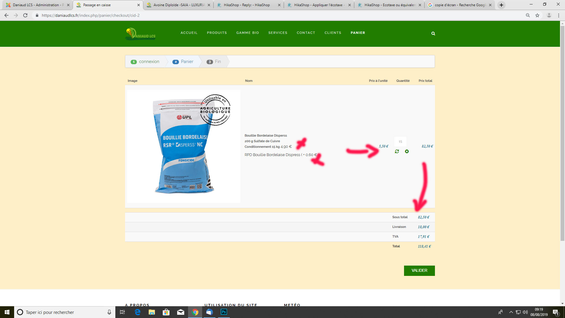 sur le panier et la facturation les calculs sont parfaitement respectés la tva se fait bien sur le produit HT fois la quantité sans la taxe rpd fois la quantité, les autres paramètre n'interfèrent pas ...!