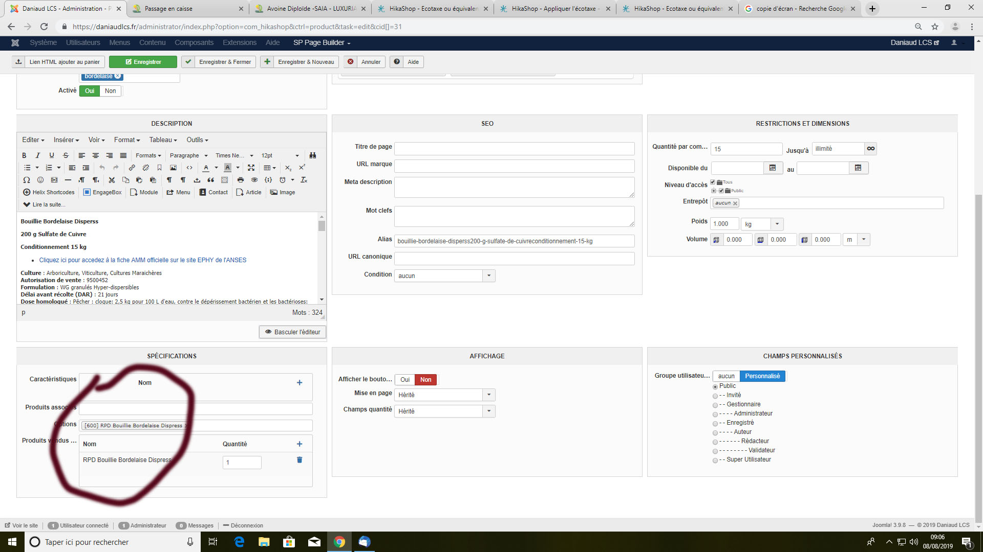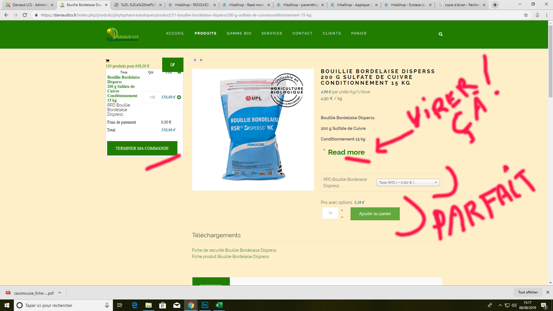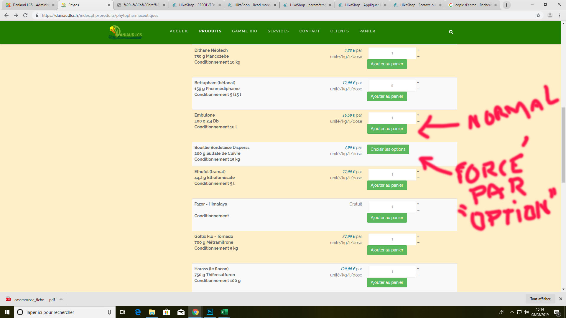 Voila ce que cela donne sur la page produit, c'est une option, or j'aurais voulu que la prise d'option soit automatique et imposée, surement le mode "bundle" le permetterait surement mais il ne semble pas vouloir fonctionner! (en plug'in a paramétrer?)