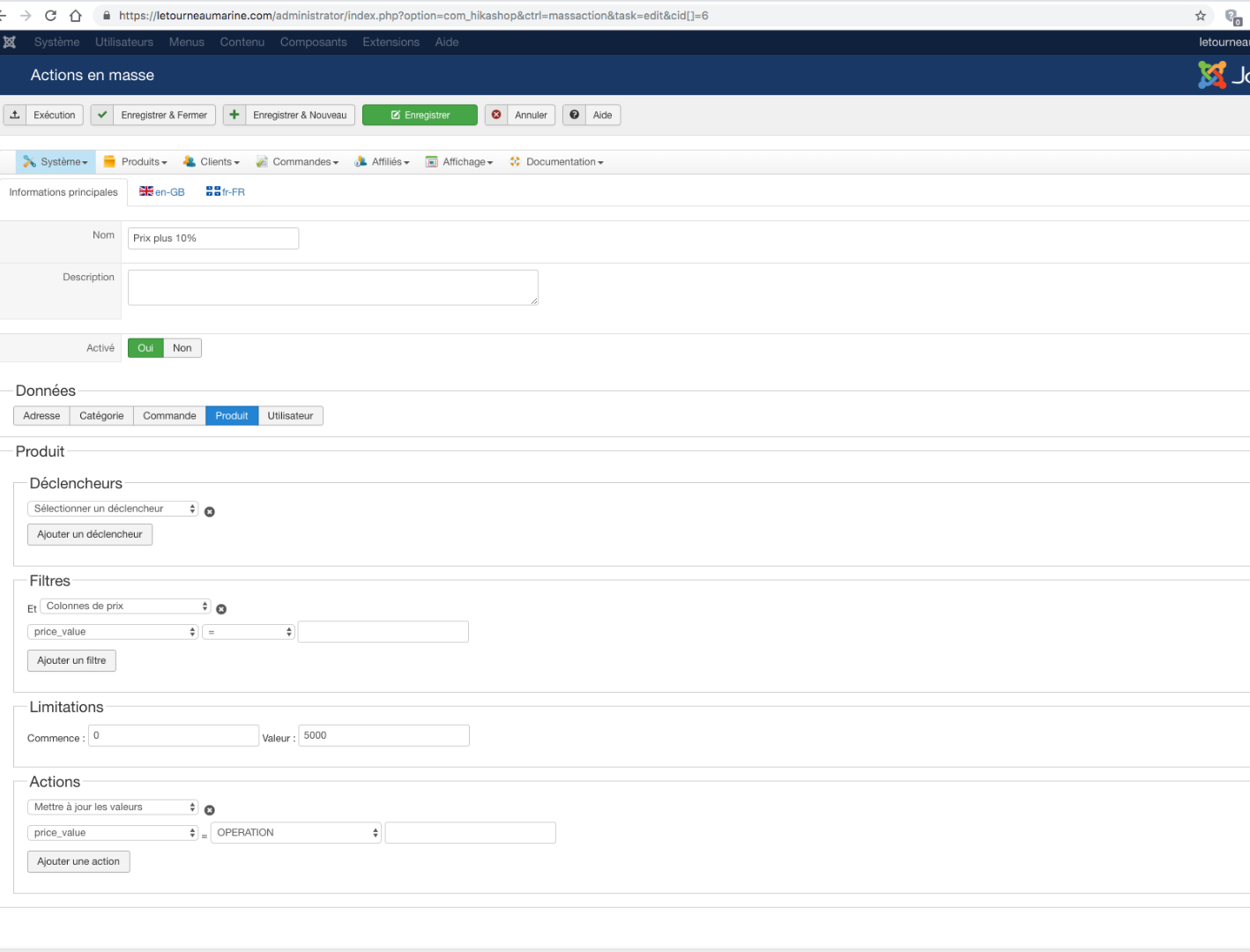 Merci pour votre réponse mais pouvez-vous me dire si les champs que j'ai remplis dans ce "mass action" sont correct ?