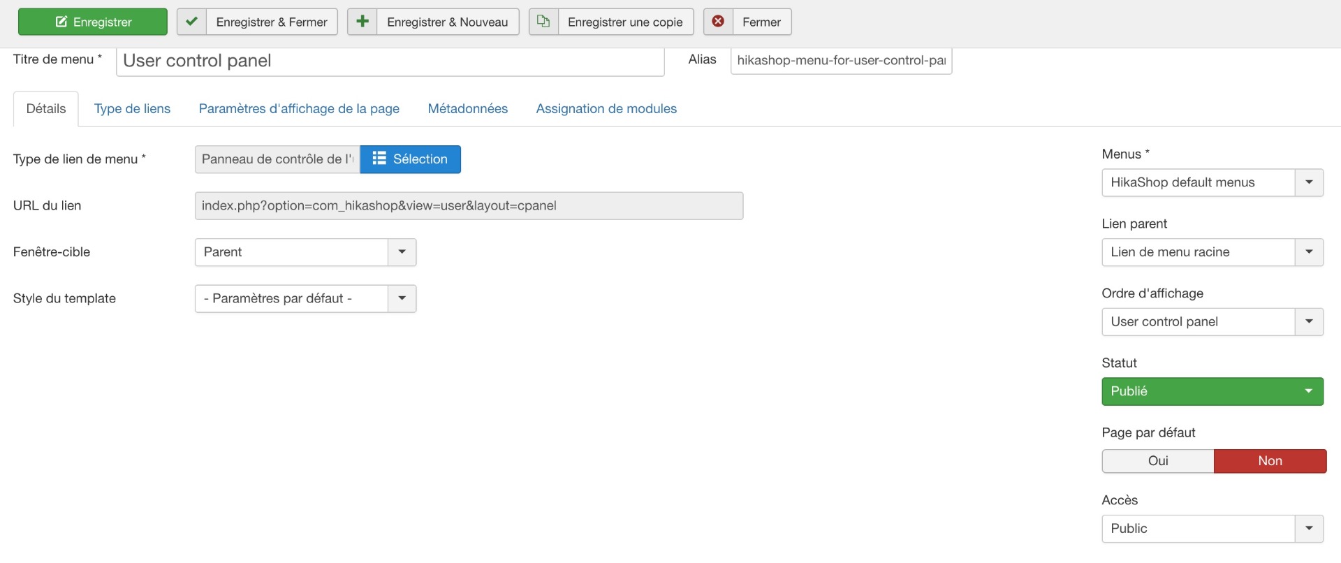 Pour cela vous devez publier l'Item Menu de type User control panel (ou le crée mais il doit normalement être par défaut présent mais non publié).