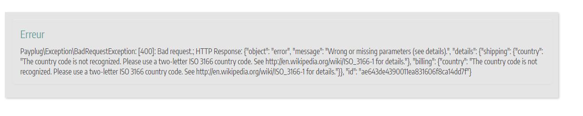 Enfin, pour la zone France, utilisez FR et non FX car normalement cela n'est pas compris par les plateformes de paiement en ligne. C'est d'ailleurs peut être là votre soucis principal.