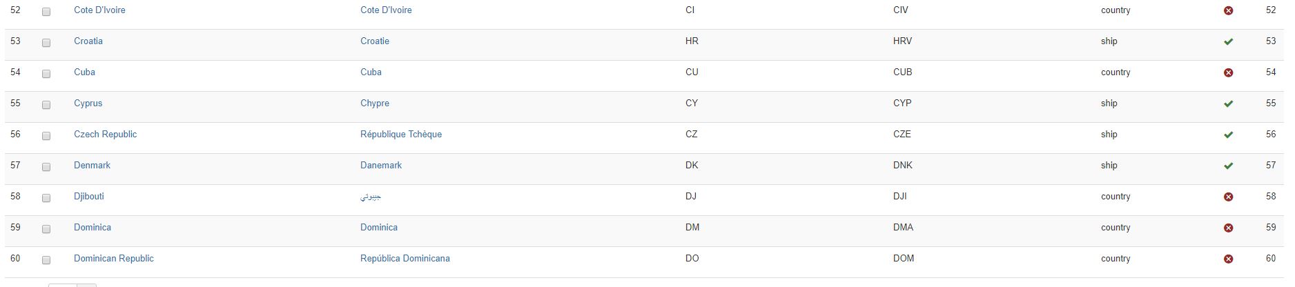 Les pays sont sensés être de type "pays", pas "zone de livraison". Vous pouvez de toute façon utiliser des zones de type "pays" dans la restriction de zone d'une méthode de livraison.