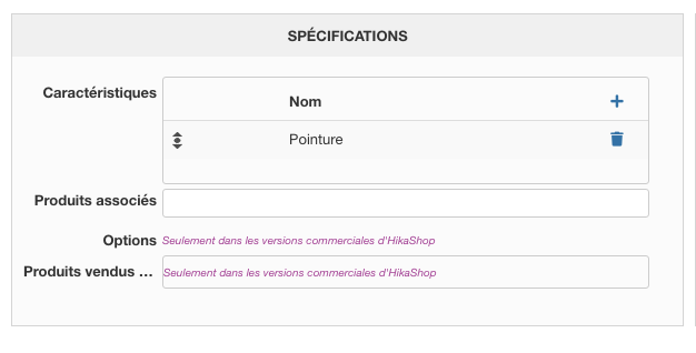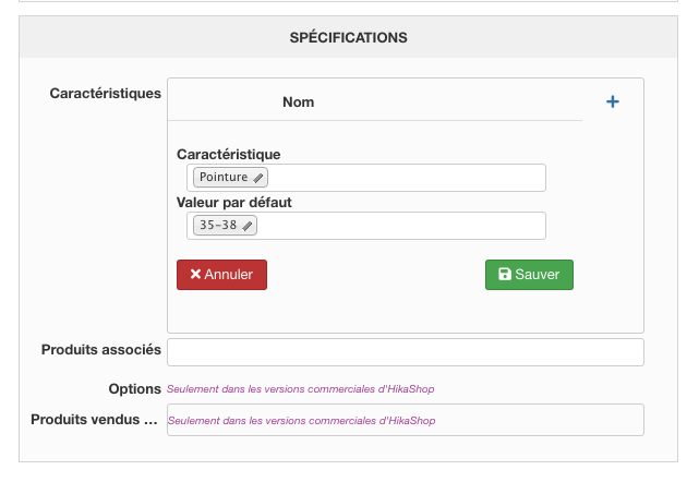 - Ajout des caractéristiques sur ma fiche produits.