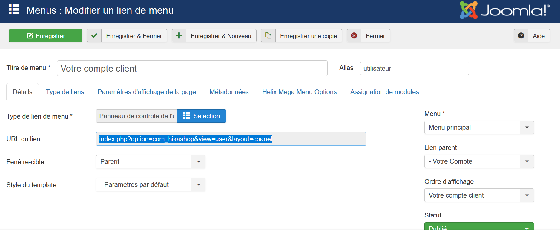 je suis en train de créer un nouveau site de e-commerce avec Hikashop