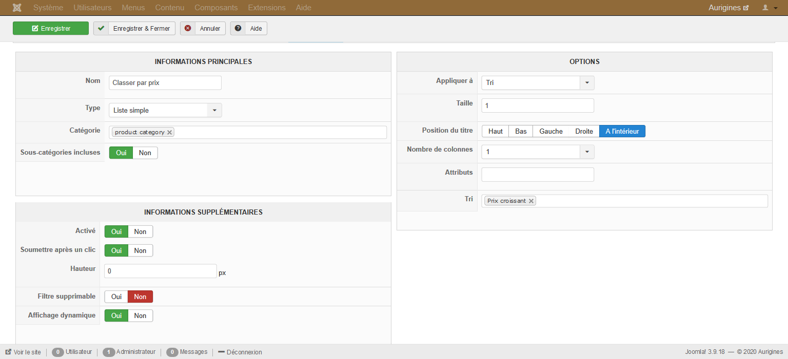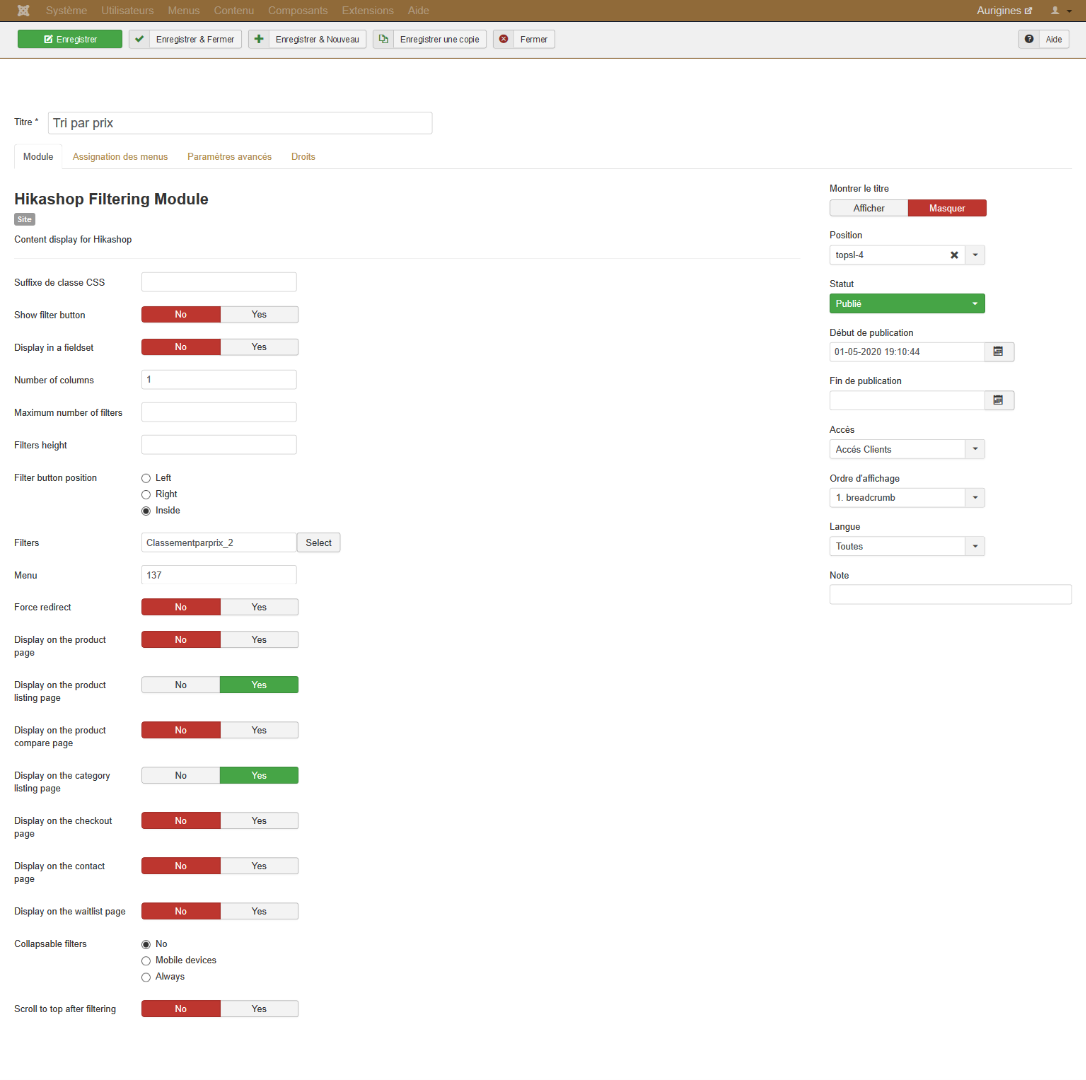 Le filtre "tri par prix" est affiché dans un autre module via HikaShop Filter Module et là,
