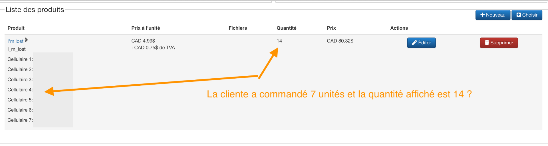 Donc si je comprends bien, le total de la commande correspond à la quantité affichée dans la commande, et cela correspond aussi au montant payé par le client.