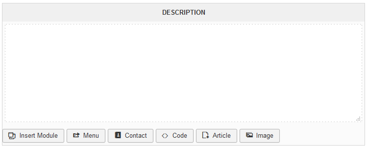 - Il n'y a pas les onglets Editor, Code et Preview (voir PJ champ_description)