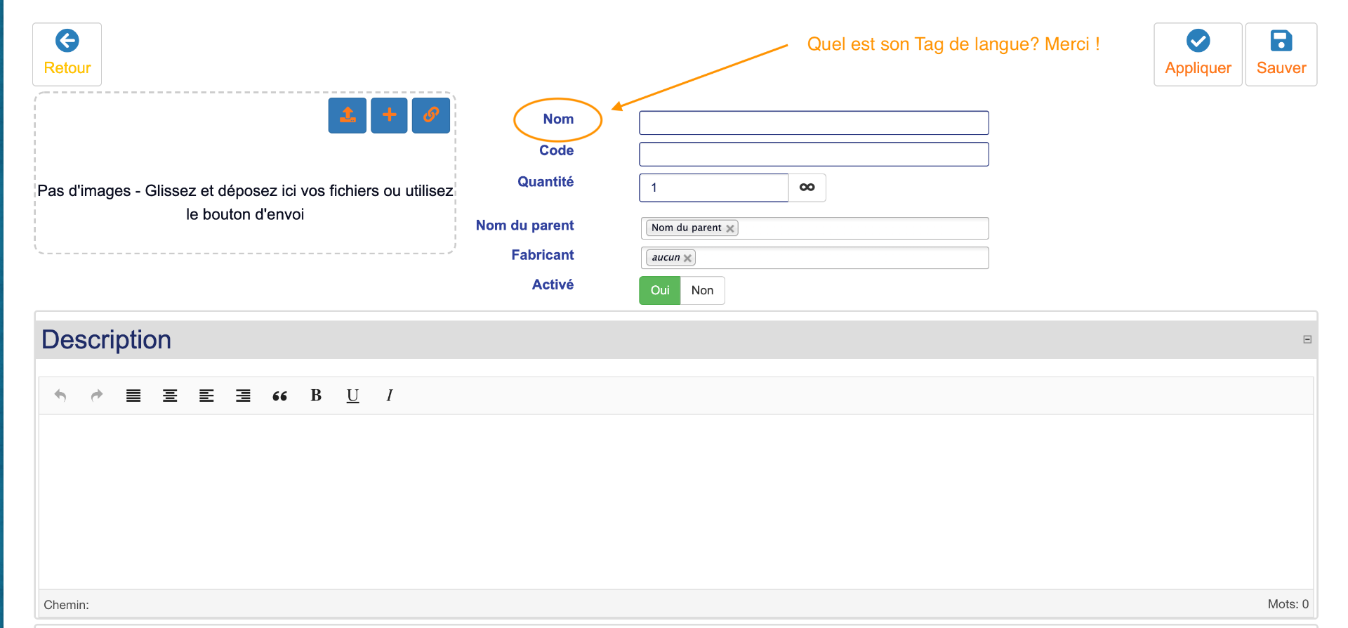 Mon but est de changer ce mot "Nom" pour: "Prénom de l'enfant".
