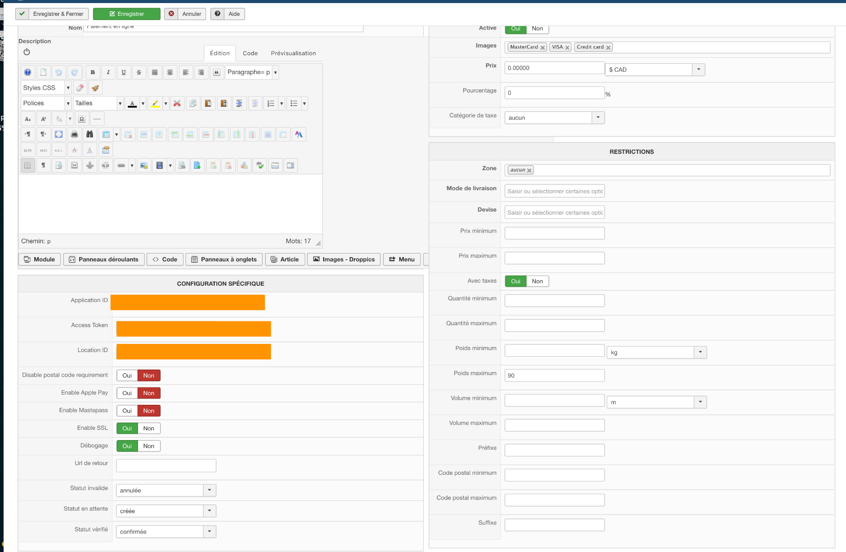 - dont vous avez configuré le plugin square via "Hikashop->Système->Méthodes de payments"