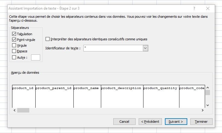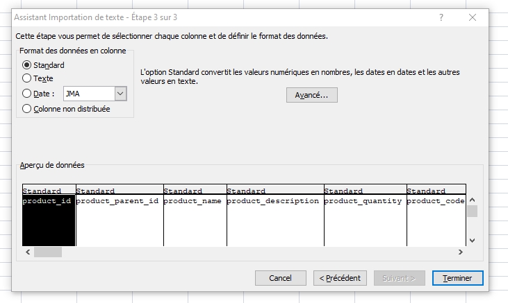Alors que ma proposition de passer par l'outil d'import Excel est fonctionnelle, peu importe votre version d'Excel.
