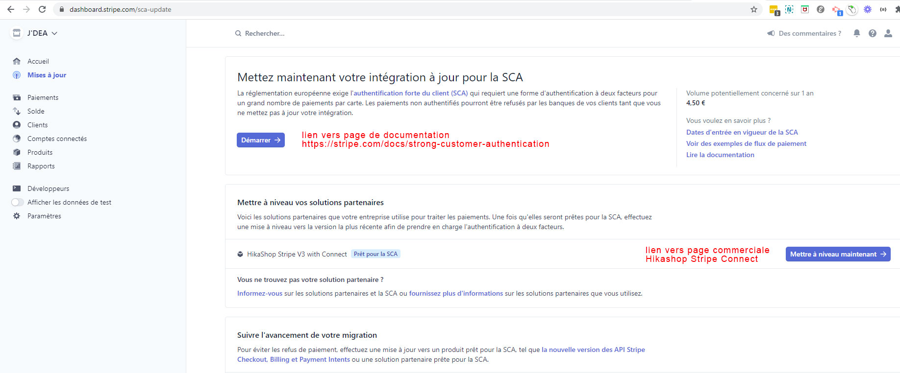 Donc à la question "comment le SCA se manifeste-t-il pour les acheteurs CONCRETEMENT, lors de leur paiement?", je ne peux pas vous répondre car cela dépend de Stripe. Si ça se trouve, vous avez un paramètre à configurer pour le 3D secure dans votre compte Stripe. Je ne suis pas familier avec les comptes marchand Stripe, donc je ne saurais pas dire.