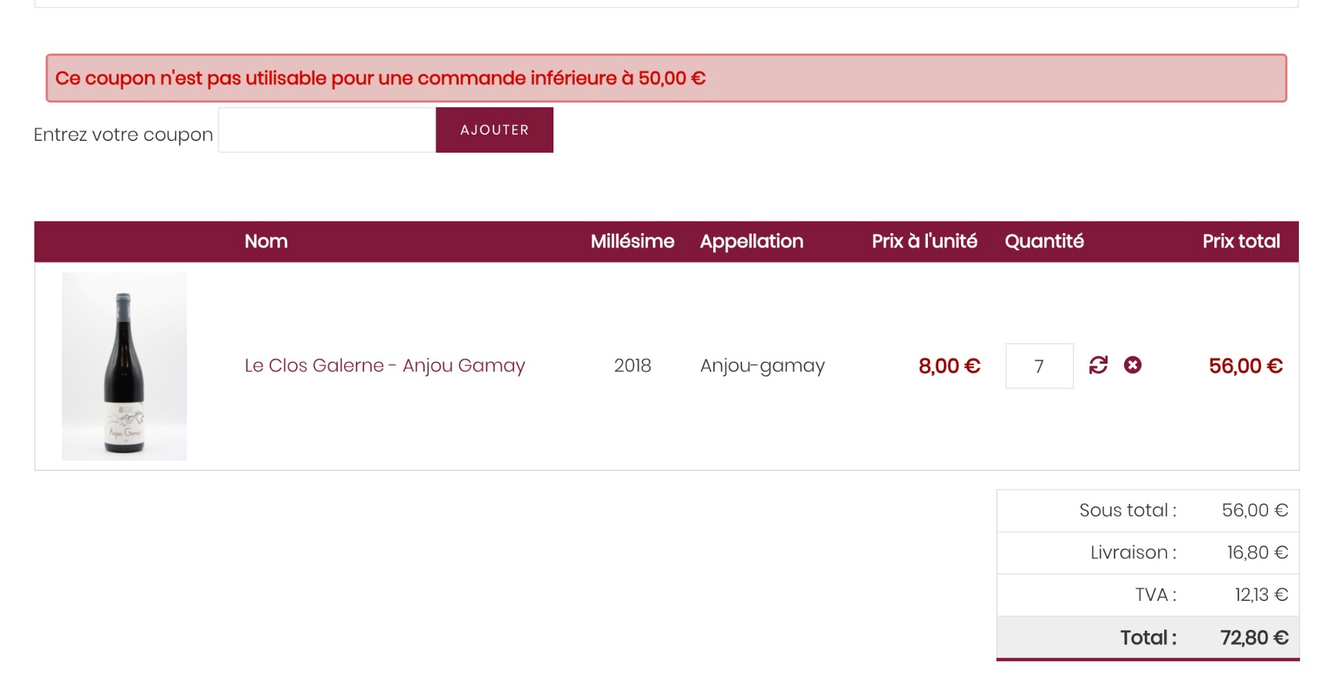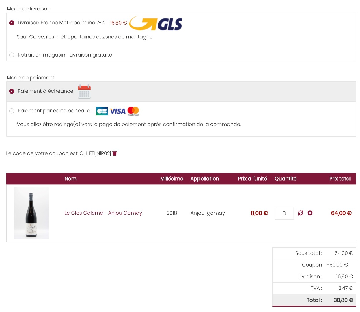 Sauf quand je déduit un coupon où, comme vous pouvez le voir dans la copie écran, la TVA (20%) de 3,47 € sur un reste à payer de 30,80 est fausse, elle devrait être de 5,13 €.