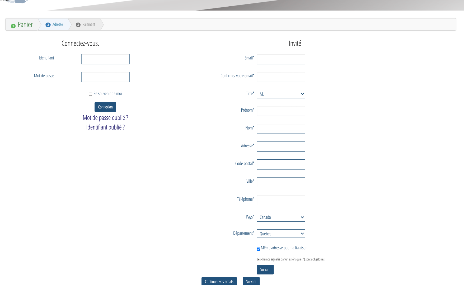 Nous voulons que les visiteurs puissent acheter comme invité mais, aussi de créer un compte s'il le désir.