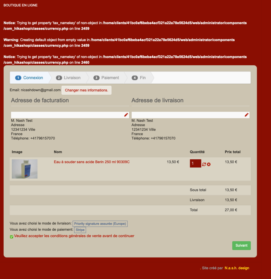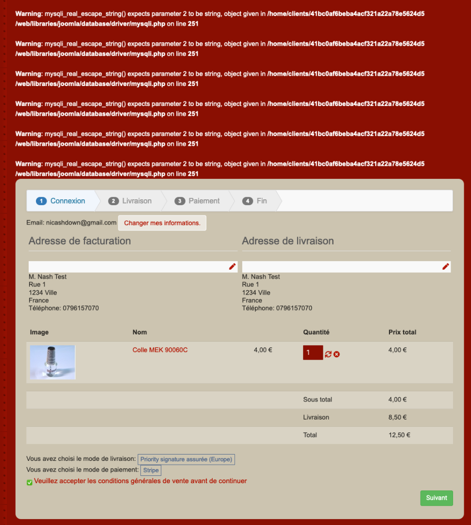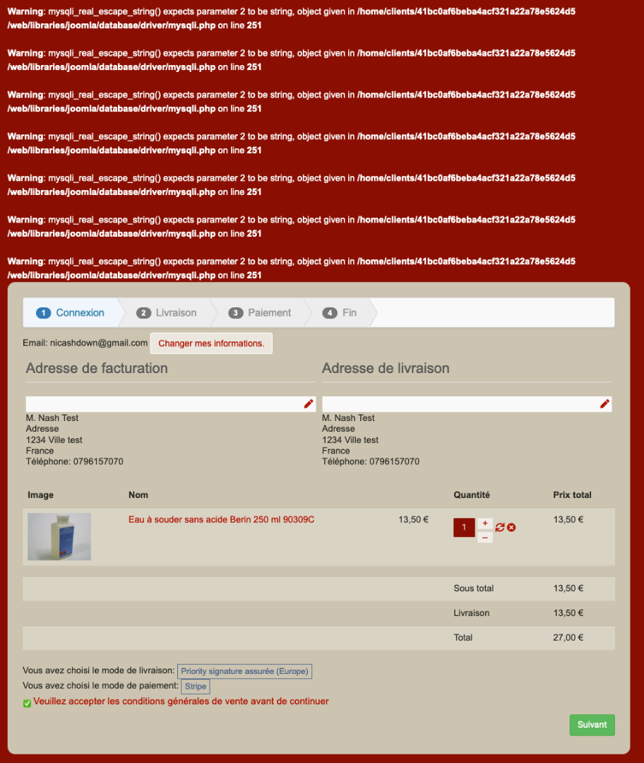 Debug de votre méthode de paiment, puis faite un nouveau test