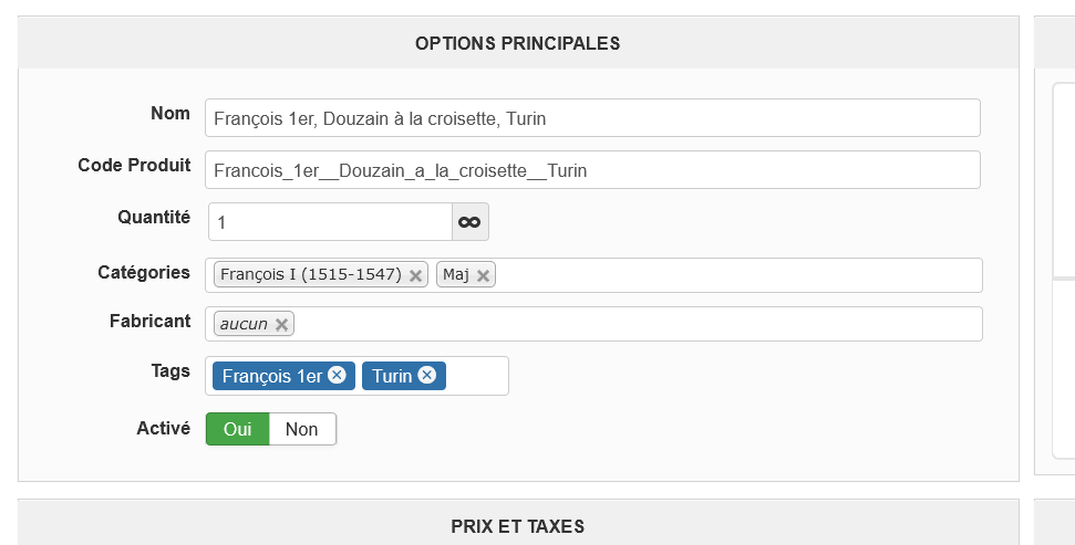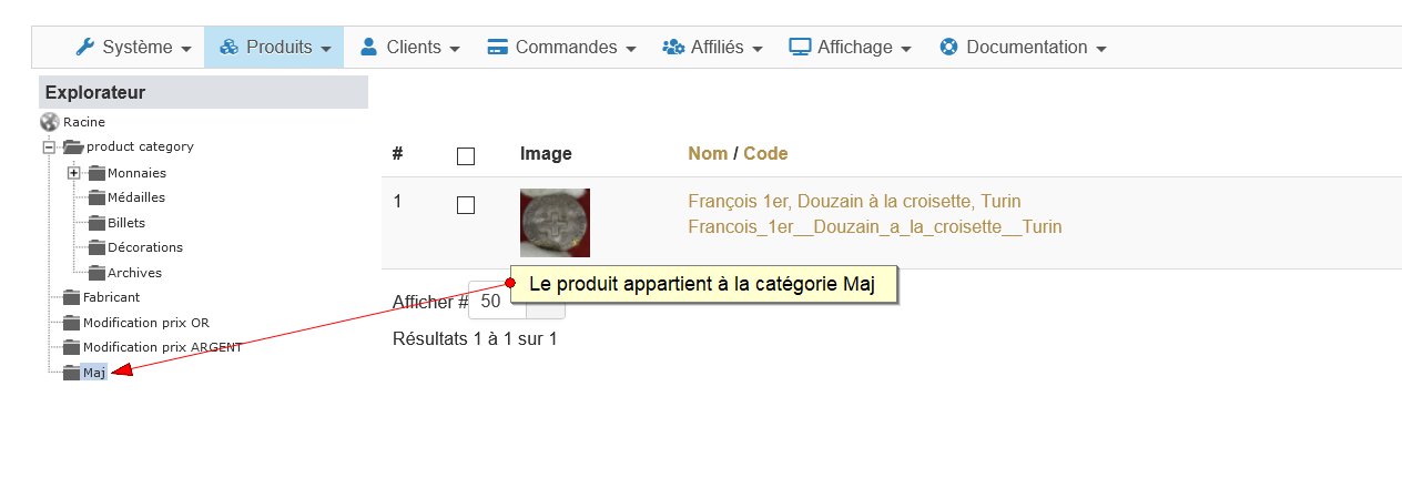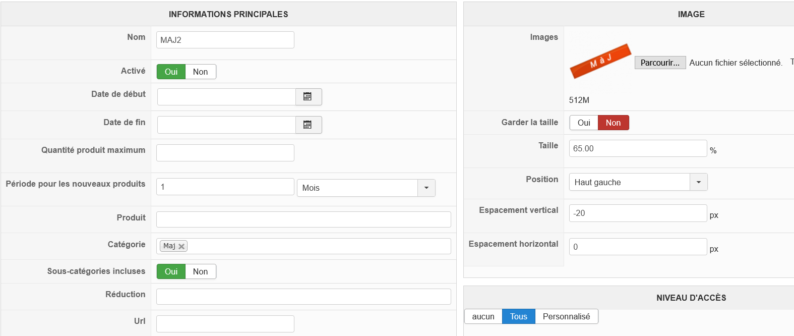 J'ai créé un badge pour les produits qui sont classés dans la catégorie "Maj"