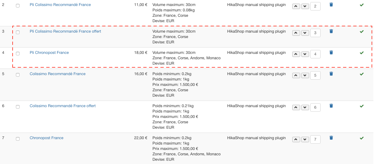 j'ai mis en place de nouveaux modes de livraison avec règles spécifiques afin de proposer une livraison gratuite colissimo dès le deuxième article commandé pour la France.