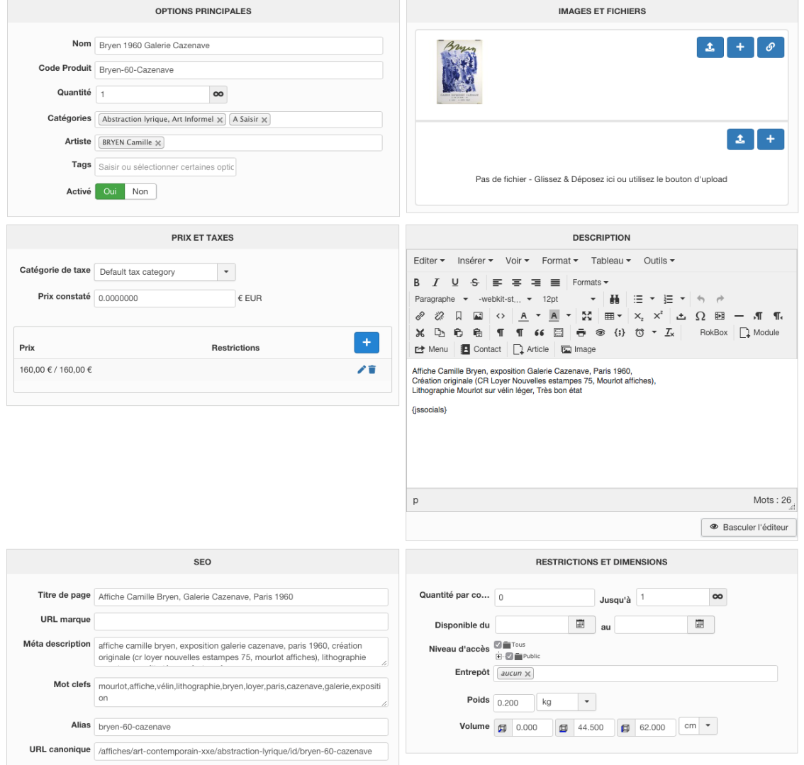 néanmoins en cas de commande de plusieurs produits de types différents (estampe <30cm et affiche >30cm), il est proposé non seulement les choix souhaités (ensemble >30cm) à savoir :