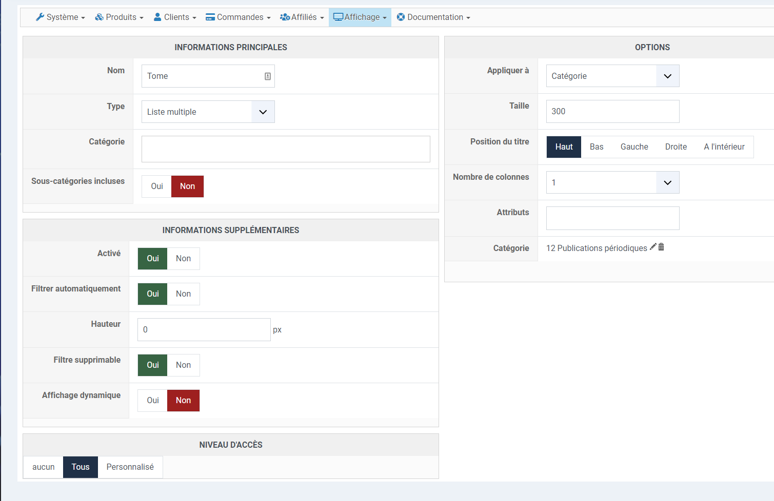 4. Le système de tag de joomla ne permet pas ce genre de chose, en tout cas, c'est une grosse usine à gaz pour faire cela, car ce n'est pas prévu. Il est en effet plus pertinent de ne pas l'utiliser et d'avoir à la place un champs personnalisé de la table "produit". Il faut précréer les valeurs dans le champs, et il n'y a pas de lien automatique pour accéder au listing des élément avec la même valeur, mais cela permet d'utiliser un filtre desssus et le reste et le même. Et même pour le lien, une fois que vous avez le filtre en place, il suffit d'éditer le champs et changer le titre des valeurs pour y mettre un tag a avec un href et l'URL de la page de résultat du filtre pour la valeur correspondante et cela devrait fonctionner.