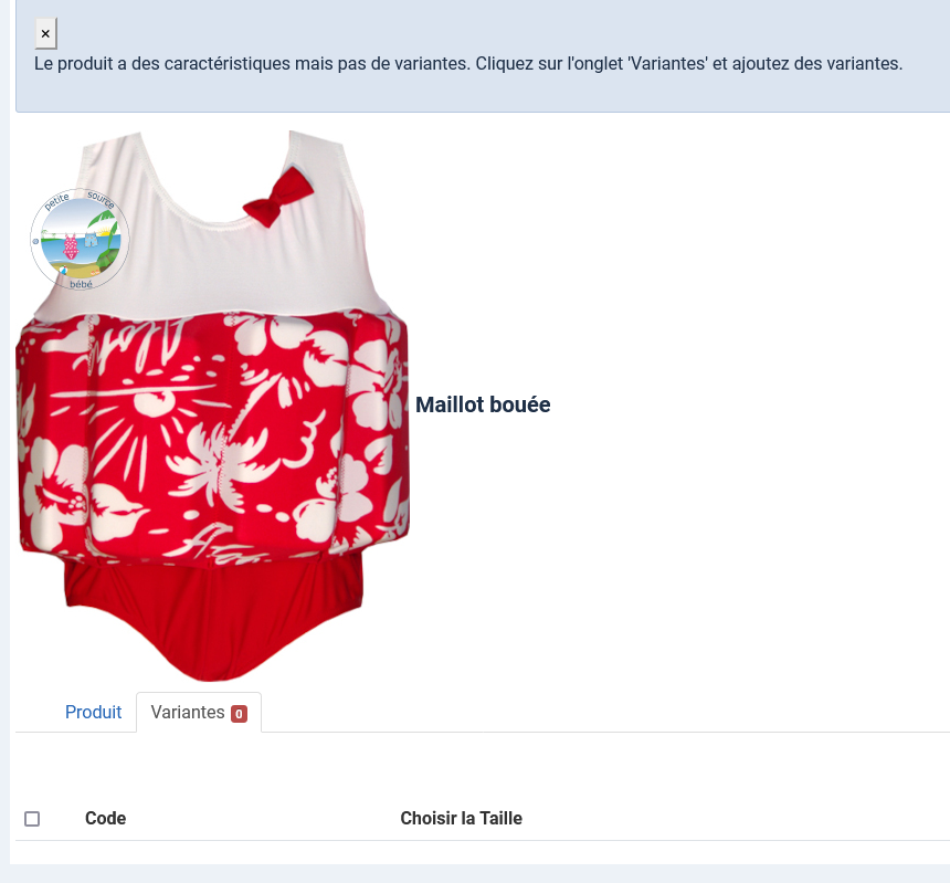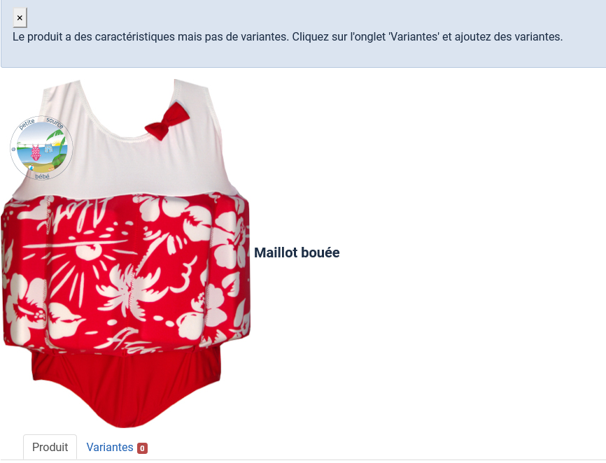 -- Error-message(debug-mod must be tuned on) -- : Le produit a des caractéristiques mais pas de variantes. Cliquez sur l'onglet 'Variantes' et ajoutez des variantes.