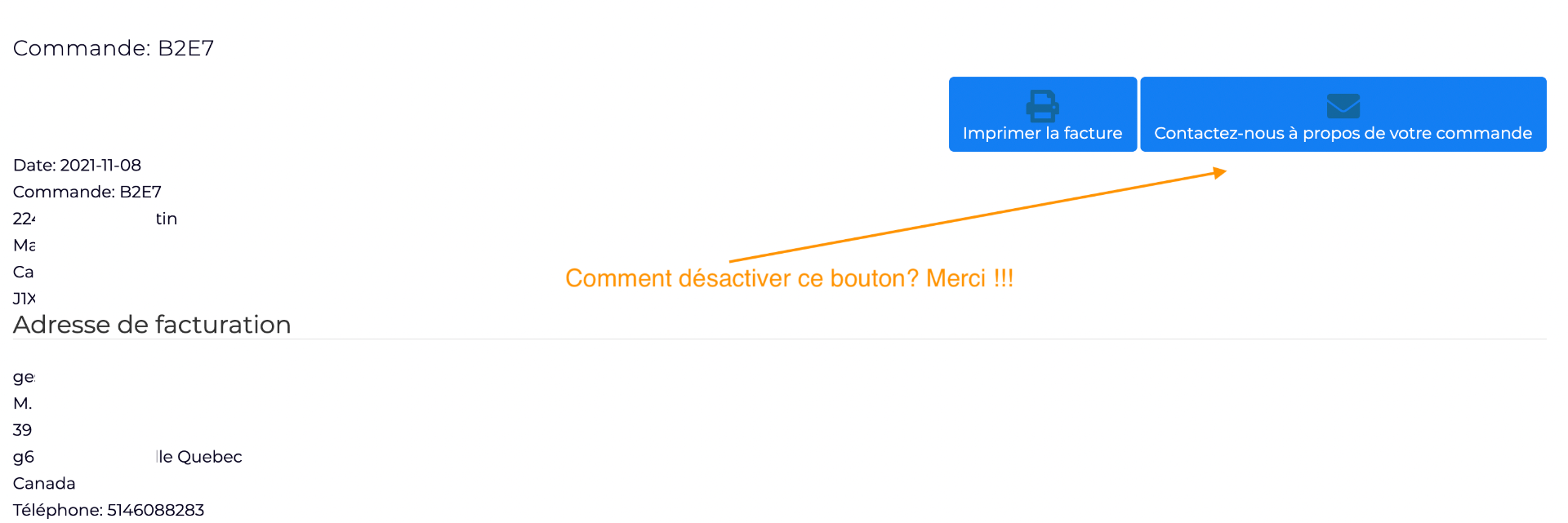 Cacher le bouton "Contactez-nous à propos de vote commande"