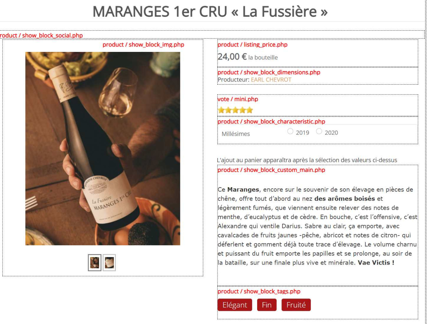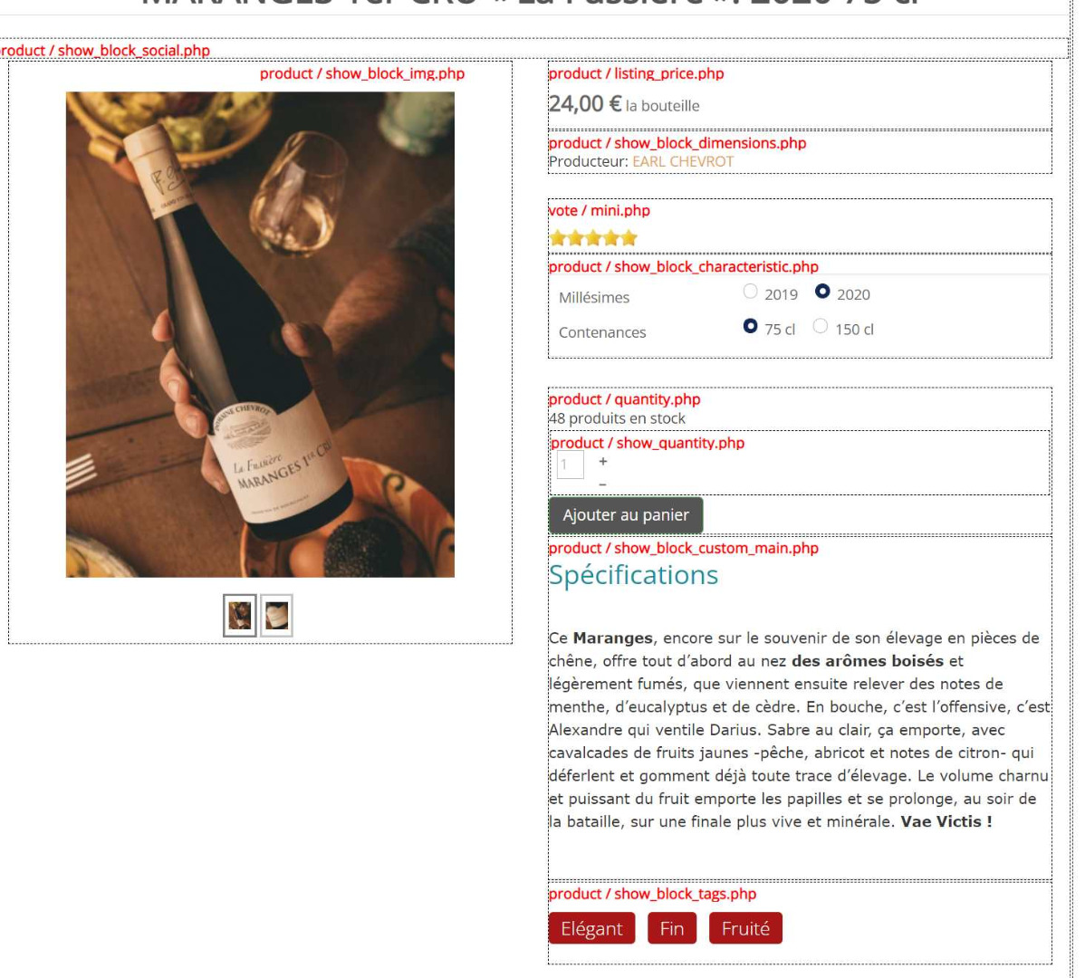Notez bien que les variantes, une fois selectionnée vont afficher