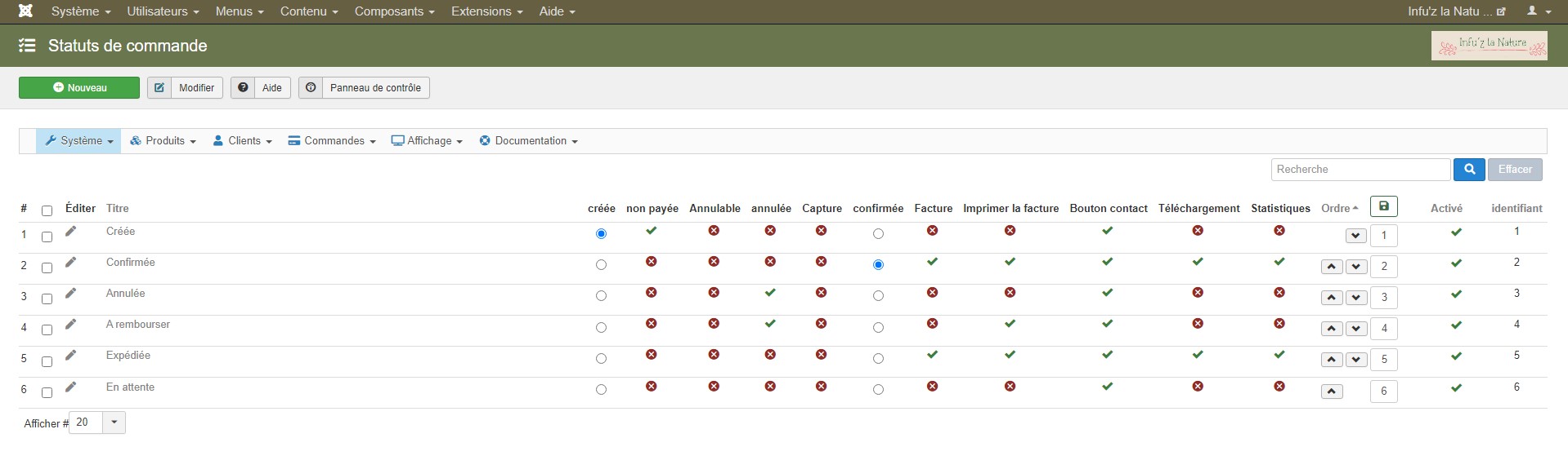 Ci-dessous la configuration de mon "Orders statuses", dites moi si c'est correct.
