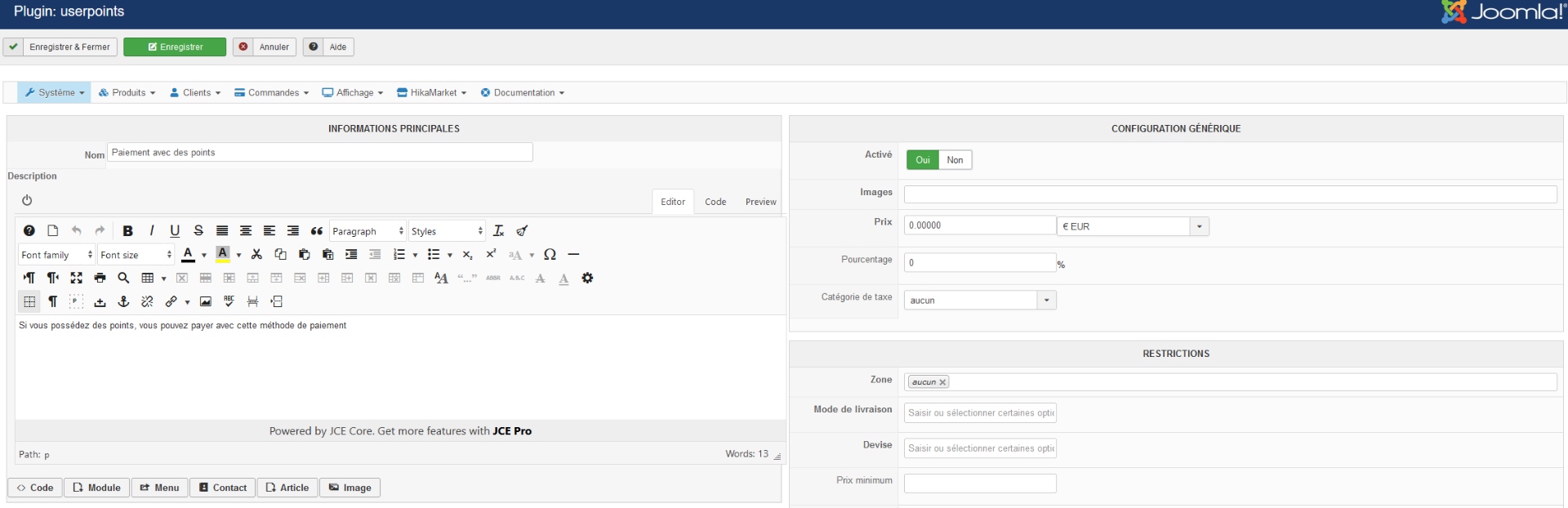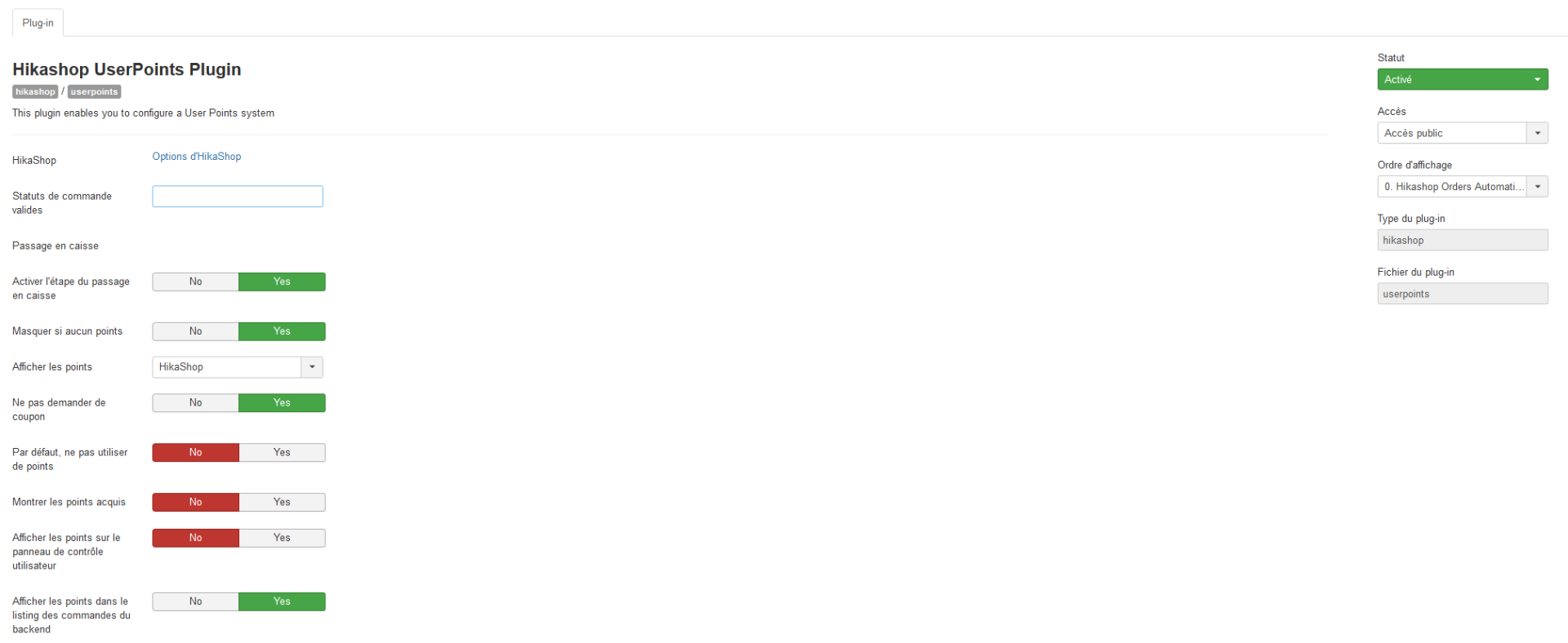 J'ai pensé que cela venait peut-être d'un paramètre du plugin de paiement User Points, j'ai mis le paramètre "Rendre les points à l'annulation" sur Non, mais cela n'a rien changé.