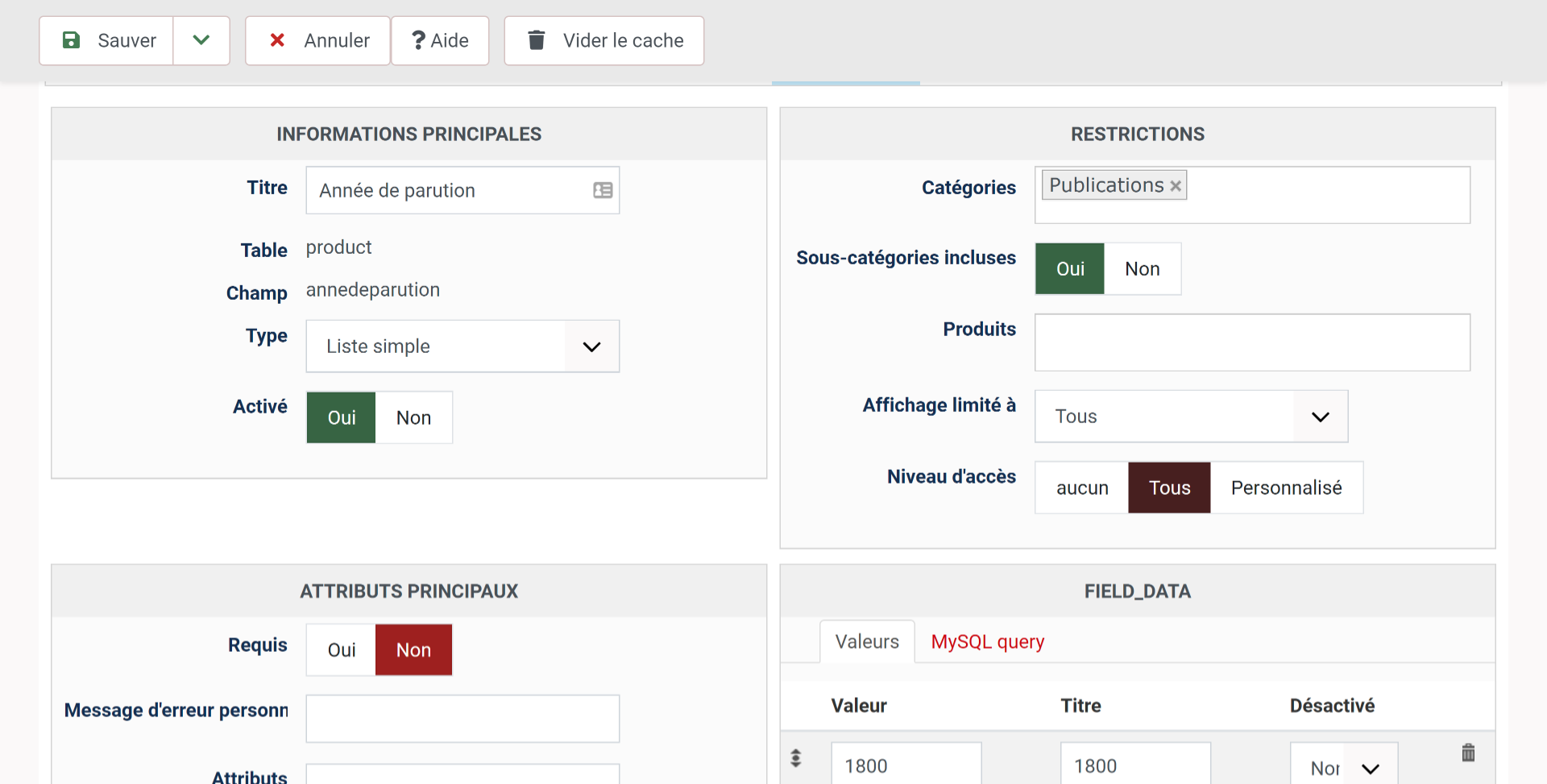 1 j'ai créer un champ liste avec des années dedans