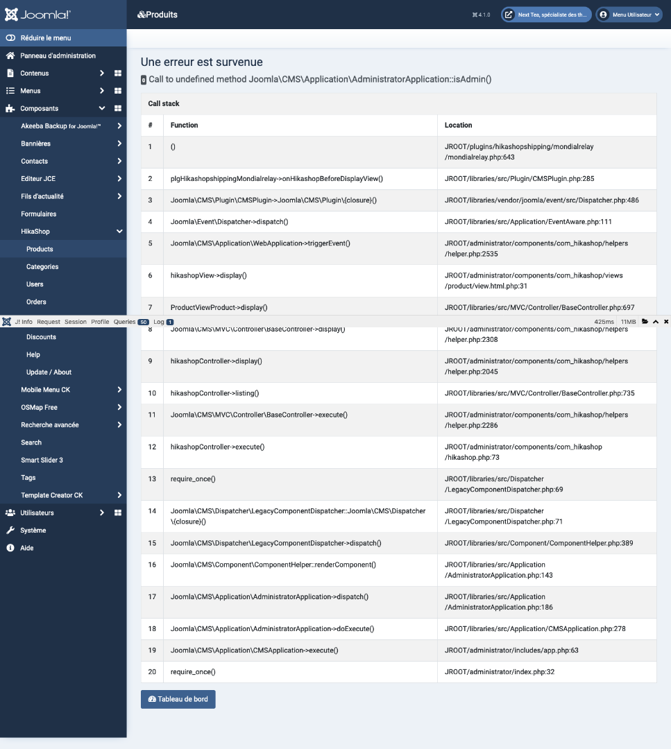 J'ai une erreur "Call to undefined method Joomla\CMS\Application\AdministratorApplication::isAdmin()"
