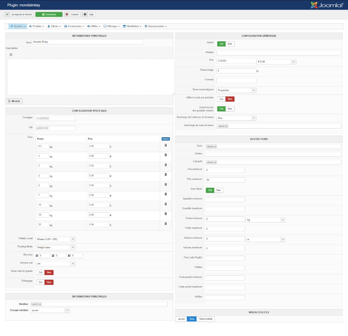 j'ai téléchargé et configuré le dernier plugin Mondial Relay, je ne comprends pas il ne s'affiche pas, voici la config :