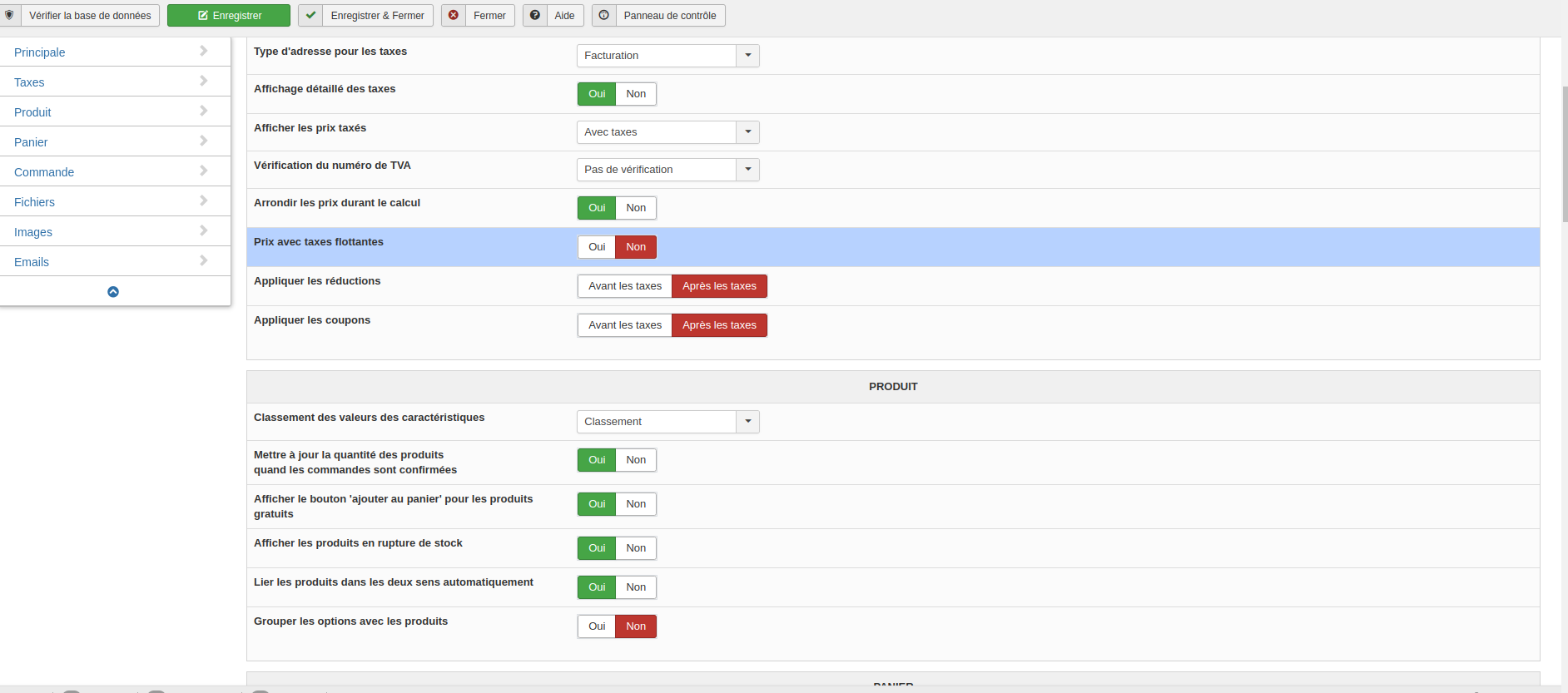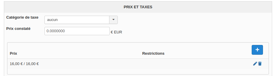 1/ Sur chaque produit maintenant, j'ai le même prix (par ex. 16,00 € / 16,00 €) dans la partie TAXES d'un produit