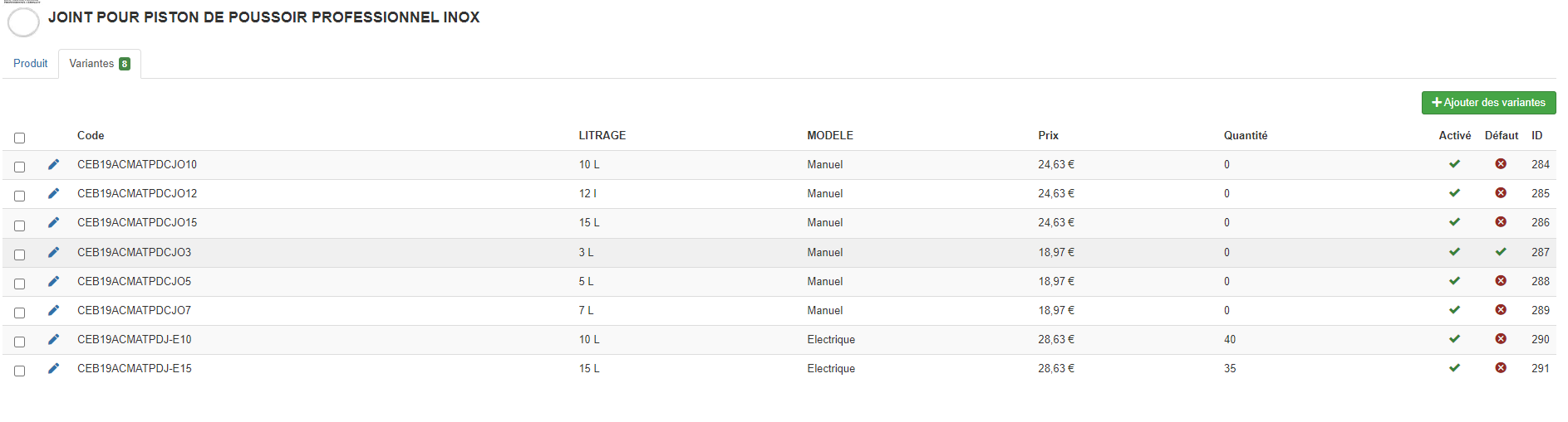 On voit sur la première image que seules les variantes à 10 et 15 L supportent le modèle electrique