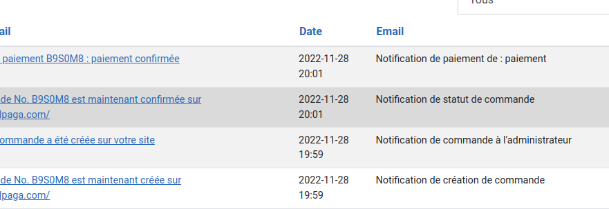 Ensuite, il faut regarder le journal des emails dans Customers>Emails log.
