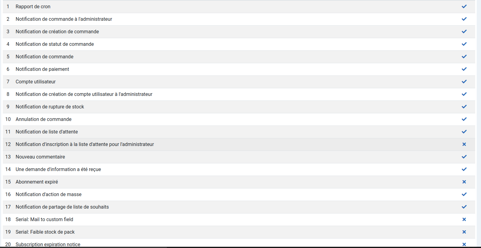 Si les commandes sont confirmées mais l'email n'est pas envoyé, alors il faut voir les informations de l'email dans Système>Emails. Si l'email a été dépublié par exemple, cela pourrait entrainer ce cas de figure.