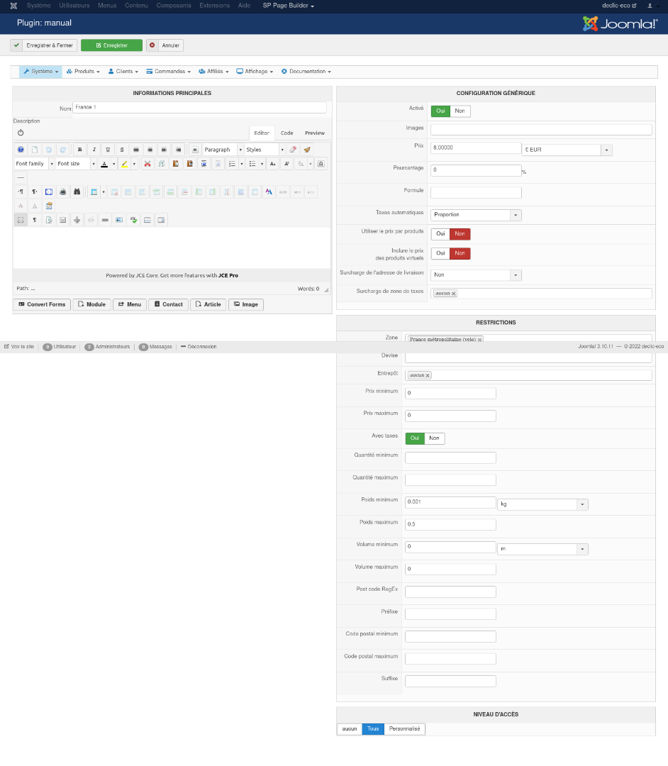 2. Non, il n'y a pas nécessairement de TVA sur les frais de livraison. Cela dépend de comment vous configurez cela. Après, pour savoir si vous devez le faire ou non, cela dépend de la loi dans le pays dont dépend la société. Il faut voir avec un spécialiste (votre comptable ?). D'après