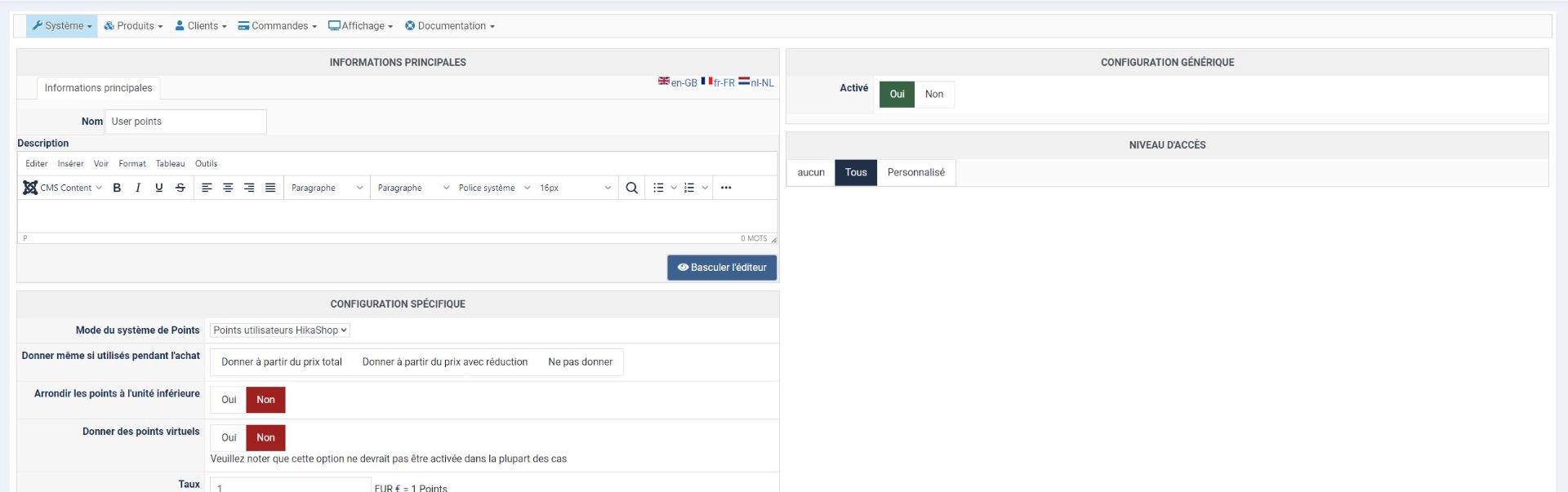 Je pense qu'il y a une erreur dans le fichier plugins/hikashop/userpoints/userpoints.php