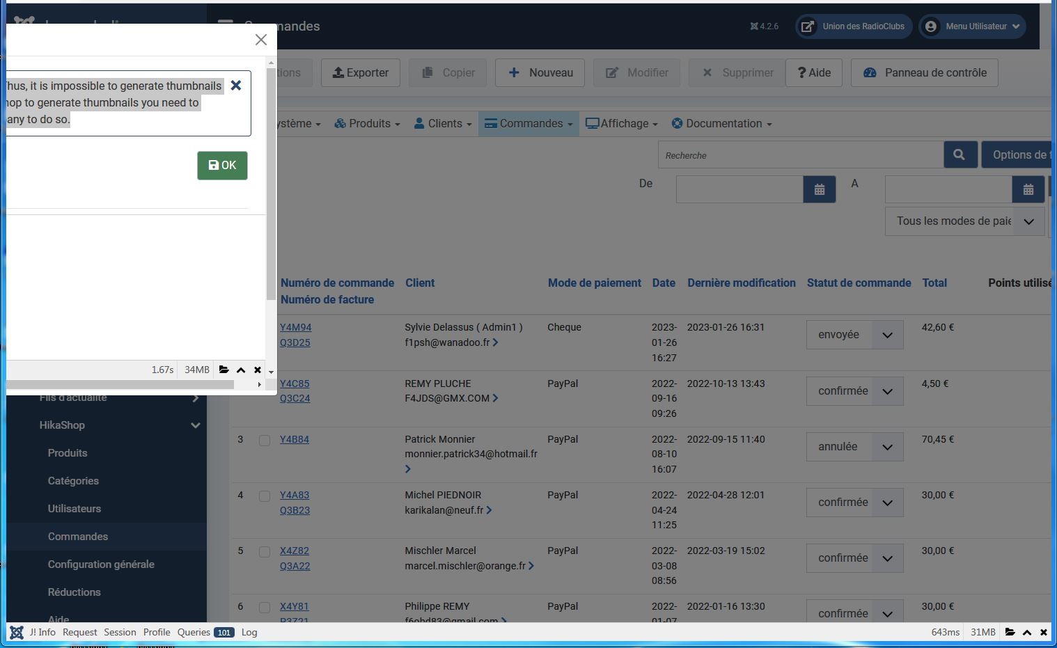 J'ai un problème d'affichage du pop-up lorsque je change le statut de la commande et je ne peux pas cocher la case envoi de l'email. J'ai testé avec un autre navigateur Microsoft Edge.